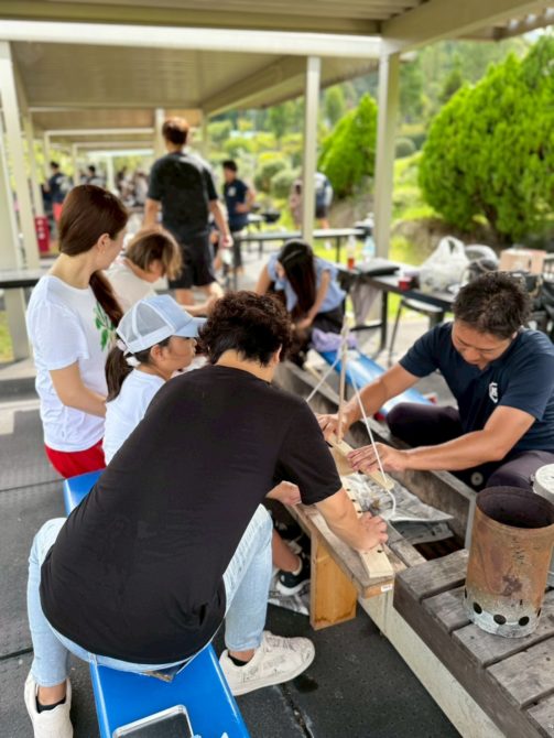 当日は、親子で火起こしに挑戦し、その火を使ってバームクーヘン作りを行いました。また、日本バーベキュー協会の上級インストラクターによる本格的なBBQ体験も実施し、学びと食の両面から充実した時間を過ごしていただきました。
